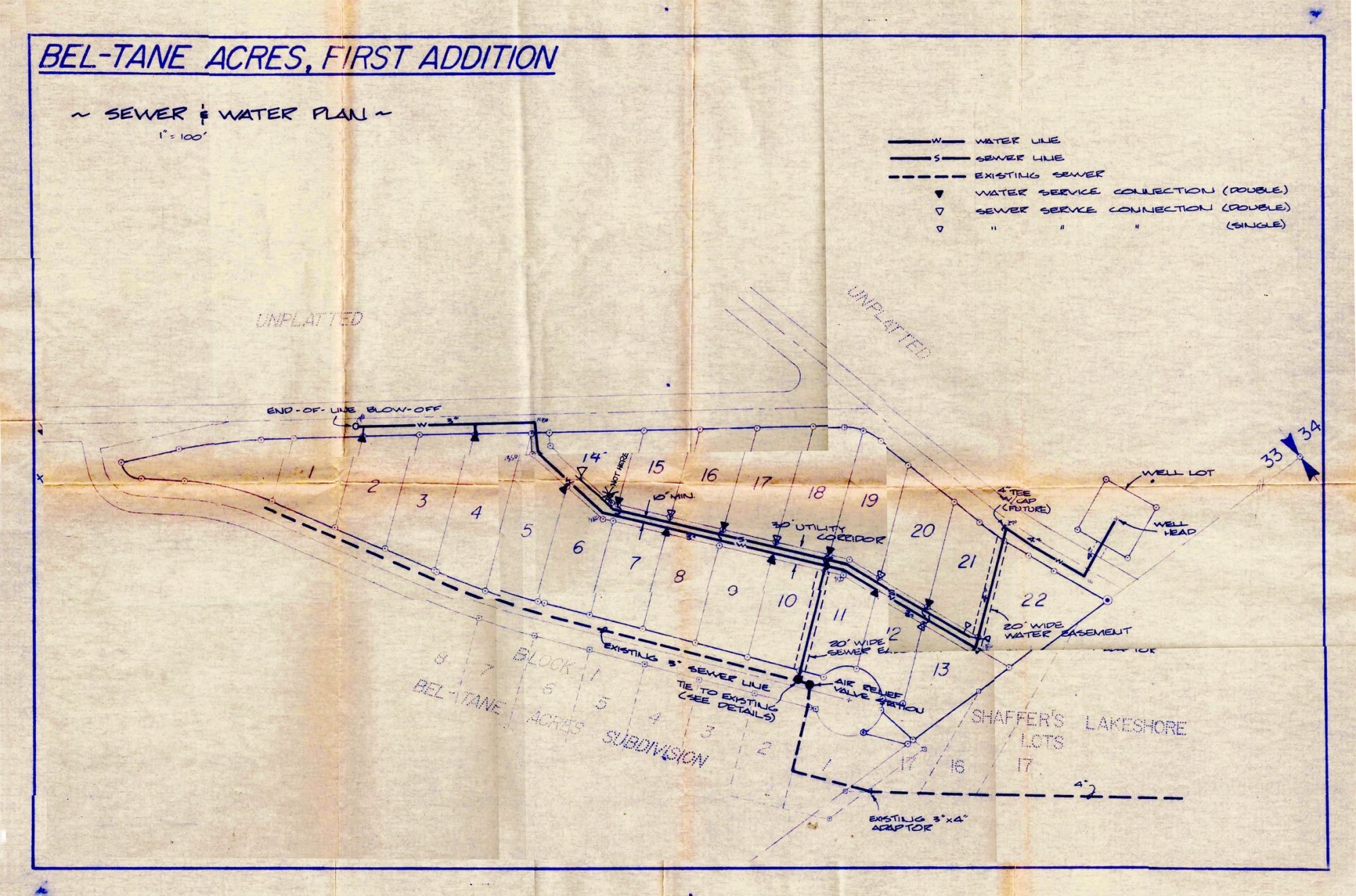 This is a link to the original plat map for Beltane Acres First Addition. Our development consists of 22 lots, plus several common areas, roads and easements. Lot 1 is the common lot owned by the Beltane HOA.